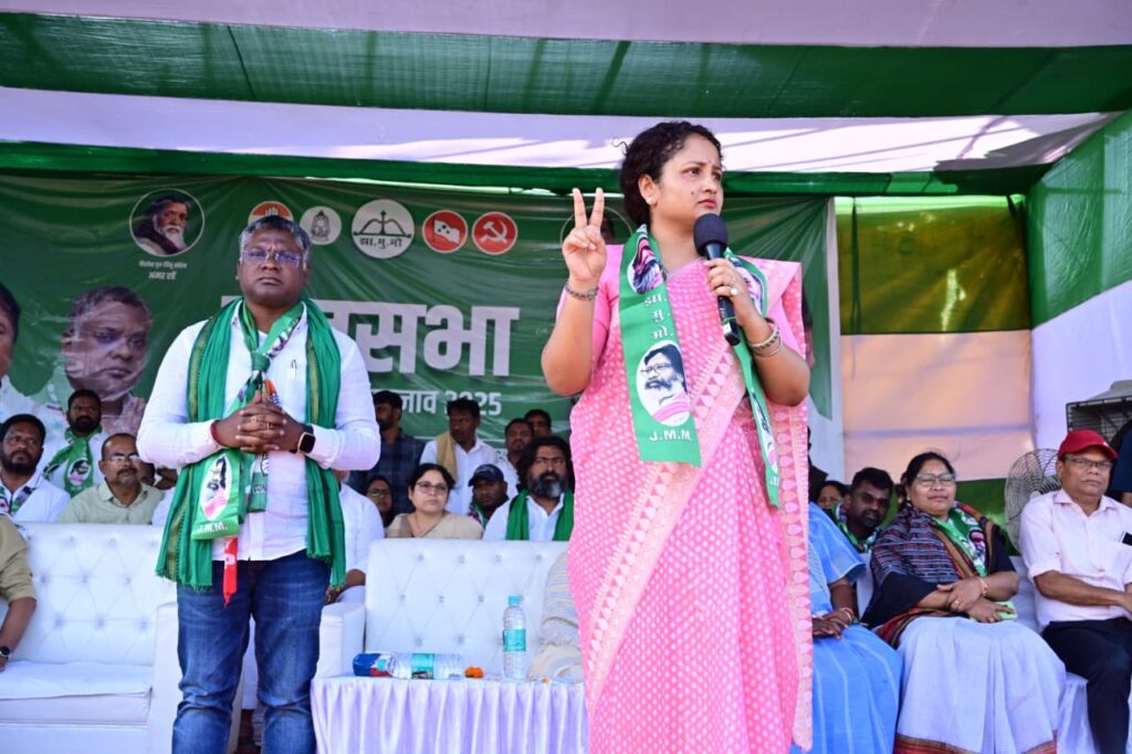 आज झारखंड मुक्ति मोर्चा की स्टार प्रचारक एवं माननीय विधायक श्रीमती कल्पना सोरेन जी ने घाटशिला उपचुनाव में पार्टी प्रत्याशी श्री सोमेश चंद्र सोरेन के समर्थन में एक विशाल जनसभा को संबोधित किया।अपने भावनात्मक संबोधन की शुरुआत करते हुए कल्पना सोरेन जी ने कहा कि वे स्वर्गीय रामदास सोरेन जी को नमन करती हैं — जो इस क्षेत्र के आपके भाई, दादा, और मांझी बाबा थे।
