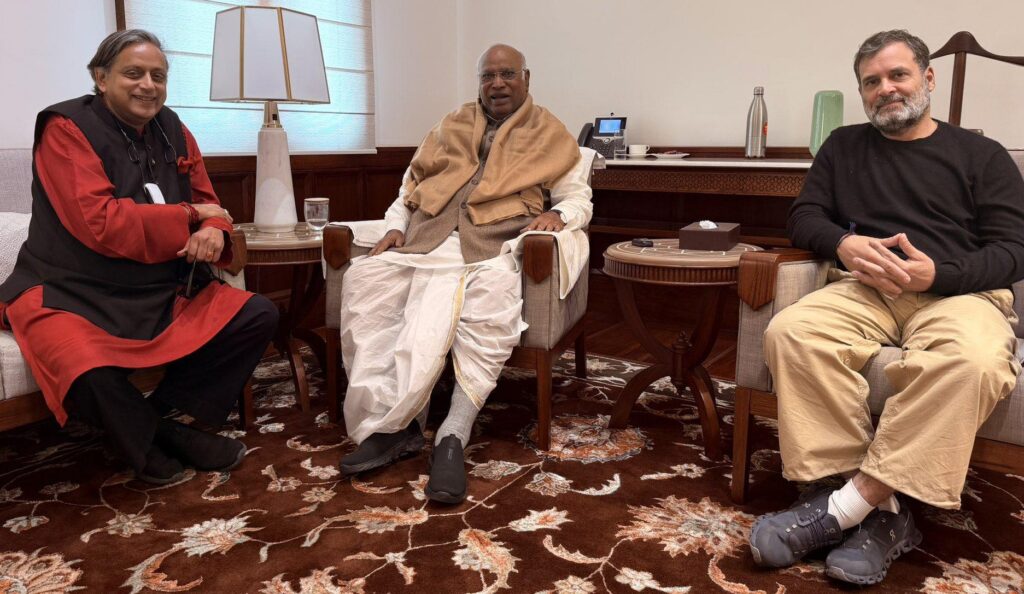 थरूर ने गुरुवार को पार्टी अध्यक्ष मल्लिकार्जुन खड़गे और राहुल गांधी से मुलाकात की तस्वीर को बड़े उत्साह के साथ साझा किया था.उन्होंने कहा था कि कई मुद्दों पर उन्होंने चर्चा की और उन्हें पता चल गया कि वे एक ही जैसे सोचते हैं.