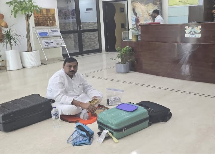 रांचीः झारखंड में पांकी विधानसभा क्षेत्र से बीजेपी के विधायक शशिभूषण मेहता दिल्ली पहुंचे हैं. दिल्ली स्थित झारखंड भवन में उन्होंने दो कमरे पहले से आरक्षित कराया गया था. लेकिन वहां पहुंचने पर विधायक को जानकारी दी गई कि कमरा खाली नहीं है. इसके बाद वे स्वागत कक्ष के सामने फर्श पर धरने पर बैठ गए. वहीं पर टिफिन खाया.