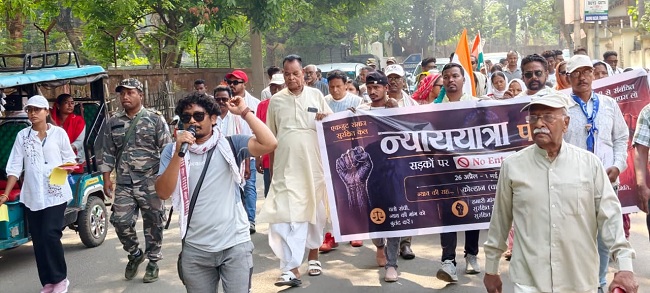 न्याय यात्रा में सैकड़ों ग्रामीण और विभिन्न समाजिक संगठनों के लोग और महिलाएं शामिल हैं.