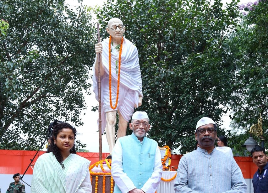 गांधी जंयती के अवसर पर हेमंत सोरेन ने गुरुवार को रांची के मोराबादी मैदान स्थित बापू वाटिका में महात्मा गांधी की प्रतिमा पर माल्यार्पण करते हुए नमन किया. इस अवसर पर राज्यपाल संतोष कुमार गंगवार, जेएमएम की विधायक कल्पना सोरेन भी मौजूद थे.