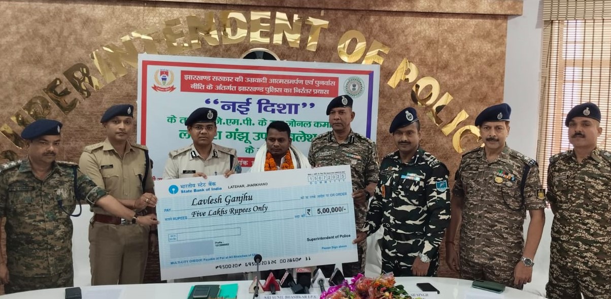 मंगलवार को लातेहार में पलामू जोनल आईजी सुनील भास्कर, एसपी कुमार गौरव और सीआरपीएफ अधिकारियों की मौजूदगी में लवलेश गंझू ने पुलिस के समक्ष सरेंडर कर दिया.